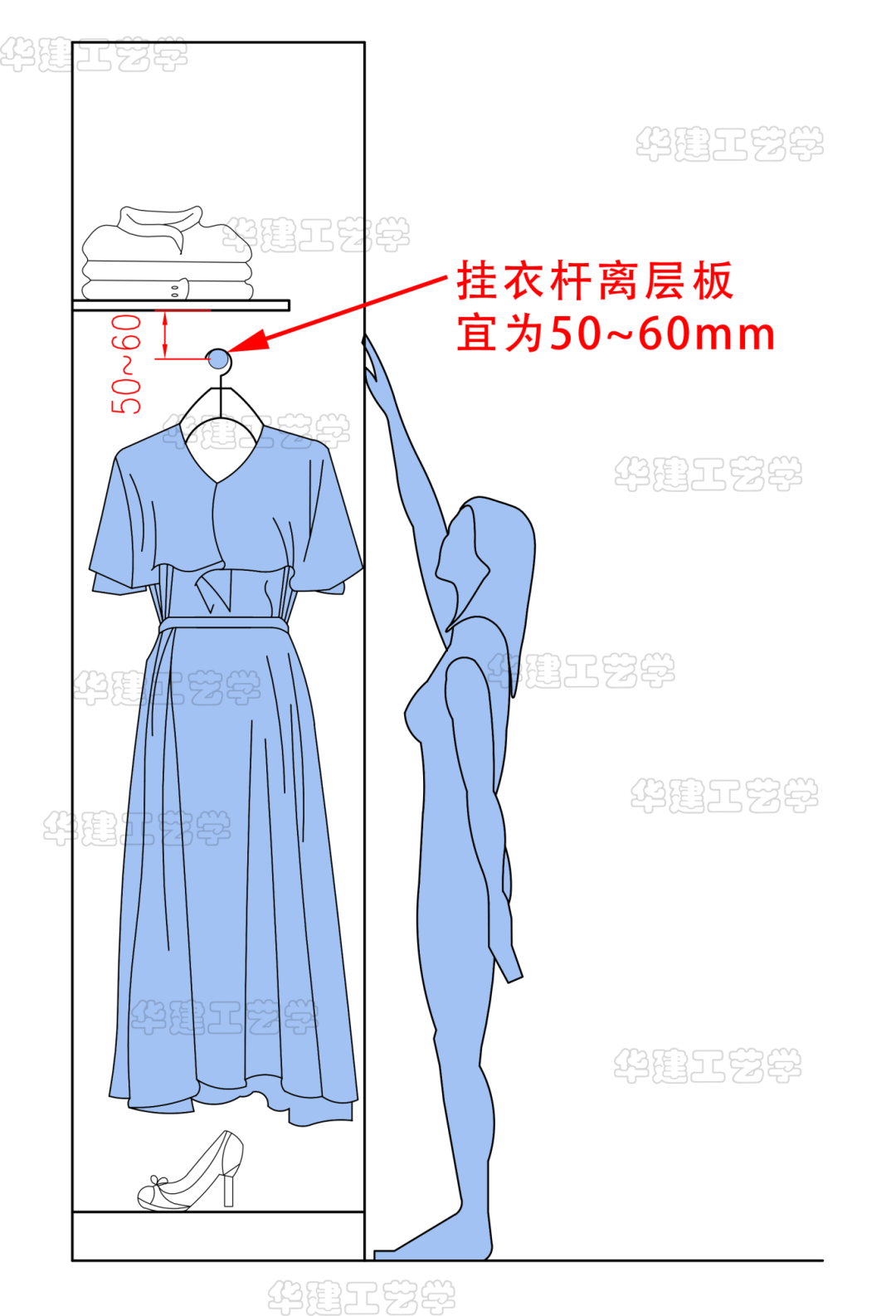 △挂衣杆离层板宜为50~60mm