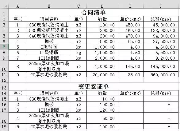 例如:施工单位在进行投标报价时,有很多单体工程分不同的清单表格进行报价,而其实大部分的清单项目是相同的,在完成第一个单体工程的投标报价后,再运用此函数在其他单体清单中,可达到了事半功倍。又如某个变更签证要参照工程合同(工程量清单为计价合同)的相应清单项目进行套价: