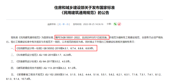敲黑板:国家标准《民用建筑通用规范》GB 55031-2022全文强制,自2023年3月1日起实施!